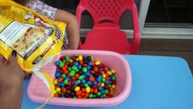 Baby Doll Bath Time in M&M Skittles Candy Pretend Play