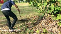 Amazing beautiful girl Catching Big Python Snake at SiemReap In Cambodia