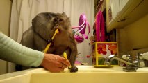 Clever monkey cares about her shiny smile