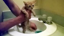 Adorable kitten takes bath!! Tutorial