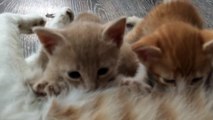 Mommy cat feeding hungry cute kittens poor mama