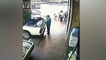 لحظة دهس رئيس حزب تحت عجلات سيارة أثناء جلوسه في مطعم!