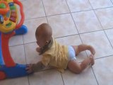 Alexis debout dans son trotteur