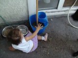 Dounia a la piscine de tatie avec mamounette
