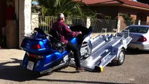 Como se carga y descarga una moto grande tipo Honda goldwing, Harley Davidson, sobre un remolque Thalman Quality Aluminium Trailers