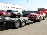 Como se carga y descarga un coche tipo 4x4en una plataforma portacoches de alumionio Thalman, ligera y robusta con toda seguridad. fabricada totalmente en aluminio y equipada con suspensión de muelles y amortiguadoores y pilotos leds.