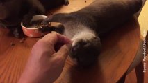 Ce bébé loutre fait des bruits étranges en mangeant !
