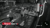 Çorum'da iş yeri önündeki bayrağı koparan iki saldırgan, güvenlik kamerasını fark edince bayrağı öpmeye başladı.
