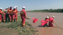 Hero firemen swim through flash floods to save trapped couple