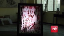 A local artist, Ramiz Peshtaz, has used his own blood to paint a picture depicting the heartache of lives lost and the trauma Ghazni residents went through duri