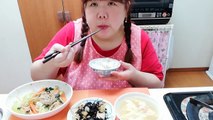 【晩御飯】【咀嚼音&食器音閲覧注意】豚肉ともやしとチンゲン菜のプルコギ風&その他2品で食べる!