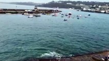 The filmer writes: ''We were taking a late night stroll in Devon when they spotted extraordinary flashes in the surf.