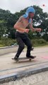 An attempt at a daunting 360 on a small skateboard went horribly wrong for one guy in Edinburgh, Scotland.Courtney Banks shared footage of her boyfriend on her Twitter page attempting a skateboard trick and taking quite a fall on July 25. “‘Am going to dae a 360’ RIP [sic],” Banks tweeted. As of writing, the footage has over 2,000 retweets on Twitter. Credit: Courtney Banks via Storyful