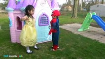 Bad Baby Joker Steals Belles Easter Eggs Toys and Spiderman Belle Open Eggs Surprise