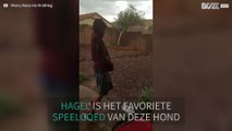 Hond probeert hagelstenen te vangen