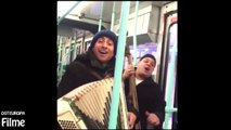 Zwei Zigeuner singen in der Straßenbahn
