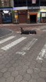 Sea Lions Fight as They Cross Street