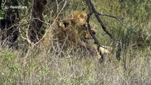 Lion caught on camera killing an elephant
