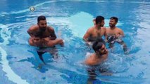 Rishabh Pant KL Rahul and Raina enjoy a dip in the pool
