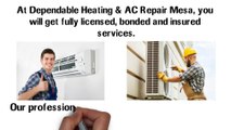 Looking for a pro in Mesa area? ... Don't wait another minute and contact Dependable Heating & AC Repair Mesa for expert heating & AC repairs! Visit http://www.dependableheatingacrepairmesa.com to know more about our services with best quality we offer.