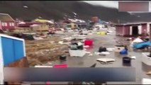 Endonezya'daki deprem sonrası kıyıya vuran dev dalgalar amatör kameraya böyle yansıdı