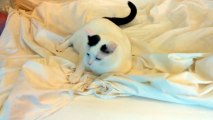 Cat defiantly refuses to give up bed sheets_1