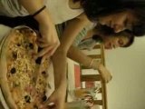 Justine coupe une pizza