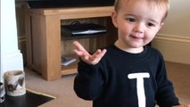 In the adorable clip, Hefner is seen trying to persuade his son to say “dada” multiple times, to no avail.