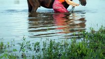 Fantastic! How to wash Horse in The small Park - Girl Village Cleaning Black Horse and Care