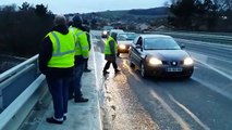 Gilets jaunes Pont-à-Mousson Sur l'échangeur au-dessus de l'A31, on attend l'escargot