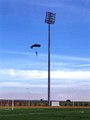 Türkiye'de ve dünyada yamaç paraşütü, Speed fly uçuşları ve Base Jumber atlayışları gerçekleştiren Cengiz Koçak(45), Tekirdağ Nakım Kemal Üniversitesi Stadyumu'nun 47 metre yüksekliğindeki aydınlatma direğinde paraşütle atlayış gerçekleştirdi.