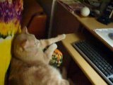 Un chat joue bizarrement avec une balle
