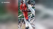 Low temperatures caused power lines to spark, and subsequently more than 300 households to lose power, Monday in the southwestern province of Sichuan, China.