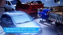 Man voorkomt val op hilarische wijze
