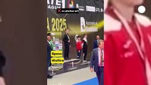 Un karateca ucraniano de 13 años se niega a hacerse una foto en el podio con el campeón ruso