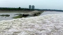 Spectacular tidal bore surges up Qiantang River in China
