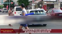 Araçlara aldırış etmeden yolda yarı çıplak yürüdü