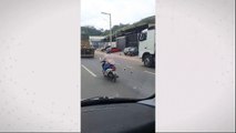 Motociclista fica "grudada" no capô após colisão na Avenida Rocha Pombo
