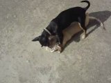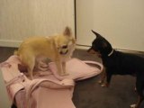 chihuahuas devant la cheminée