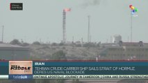 Tehran crude carrier ship sails strait of Hormuz, defies US naval blockade