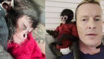 Orphaned baby monkey won't let go of man who saved him