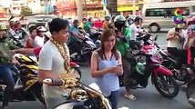 Angry Cow attack women in public place