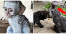 Ce bébé singe reste accroché au ventre de ce chien... Maman adoptive