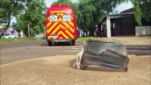 Vítima de capotamento é socorrida pelos Bombeiros na BR-163, em Cascavel