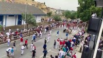 Un toro arranca dos tablones del vallado del encierro de Tafalla