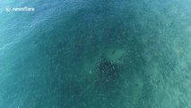Ce plongeur nage avec des dizaines de requins et dauphins... Magnifique