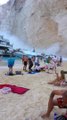 Un morceau de falaise se décroche près d'une plage (Grèce)