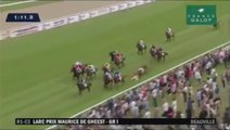 Ce cheval de course rend fou son cavalier... CHUTE !!