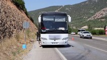 Denizli'de seyir halindeki yolcu otobüsünün motoru yandı