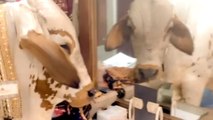 Video captured in Hoa Binh province, Vietnam, shows the cow lapping its tongue out of the corners of its mouth while standing at the back of a farm shed, surrounded by other herd members.